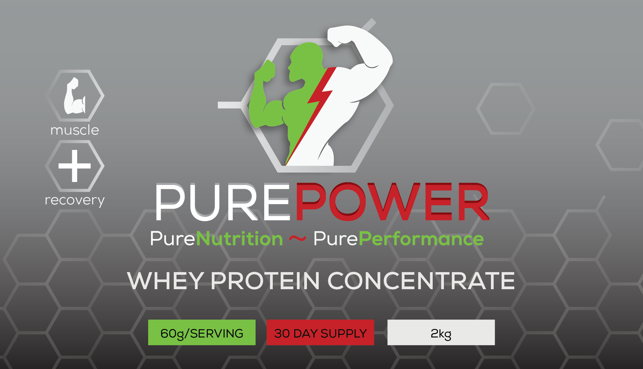 Whey Protein Concentrate is a protein powder created from cows milk. It contains 80% protein by weight so a 30g serving will give 24g of pure protein.